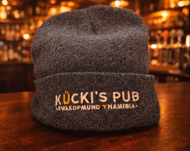 Keep warm in style with this classic grey knit beanie from Kucki’s Pub in Swakopmund. Features a quality embroidered Kucki’s Pub logo in white with the iconic gold chick mascot on the folded cuff. The soft, ribbed knit construction offers a comfortable stretch fit for all head sizes. Perfect for chilly mornings on the Skeleton Coast, desert nights, or showing off your Namibian pub pride anywhere in the world. A cozy keepsake for visitors and a go-to favourite for regulars. Exclusively available at Harry’s Products.